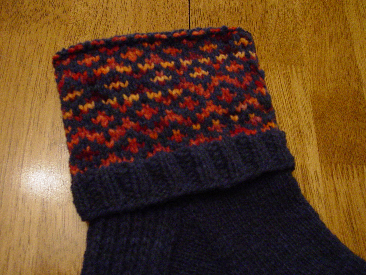 Just in time for the September 15th deadline, I've finished my sock pal's socks. The yarn was a lot of fun to work with and I even ended up with plenty of yarn left over, which will be sent along with a little gift, of course. And I have an whole skein of the blue yarn, so I've decided to start a new sock for myself, especially since it's going to be getting cool soon. I just can't wait to get back to my Birkie clogs!